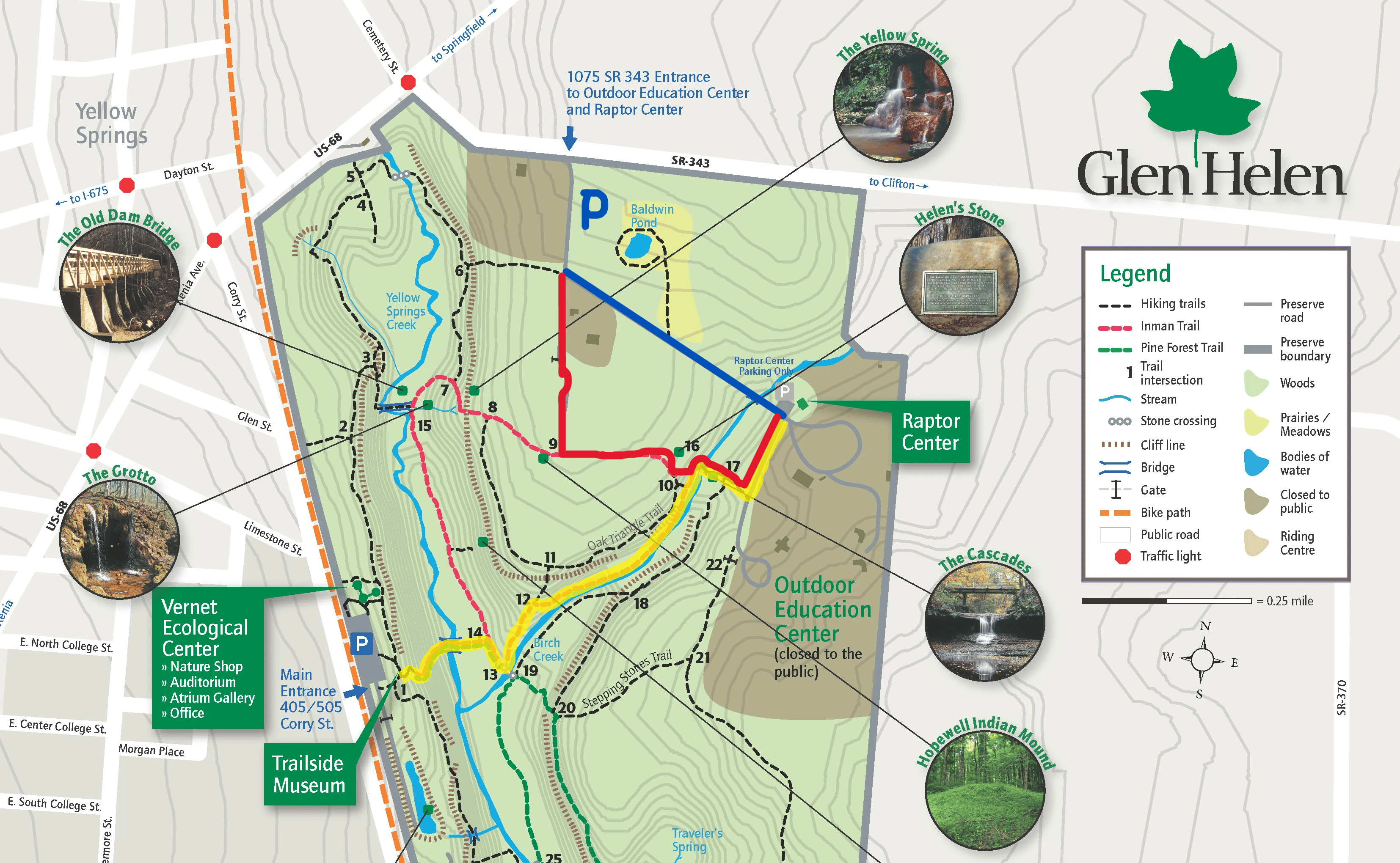 During your visit to the Glen Helen Raptor Center, you will see and learn about various types of raptors native to Ohio while walking on our outdoor path. On weekends and as other times permit, docents may introduce you to birds up close at educational stations around the building.